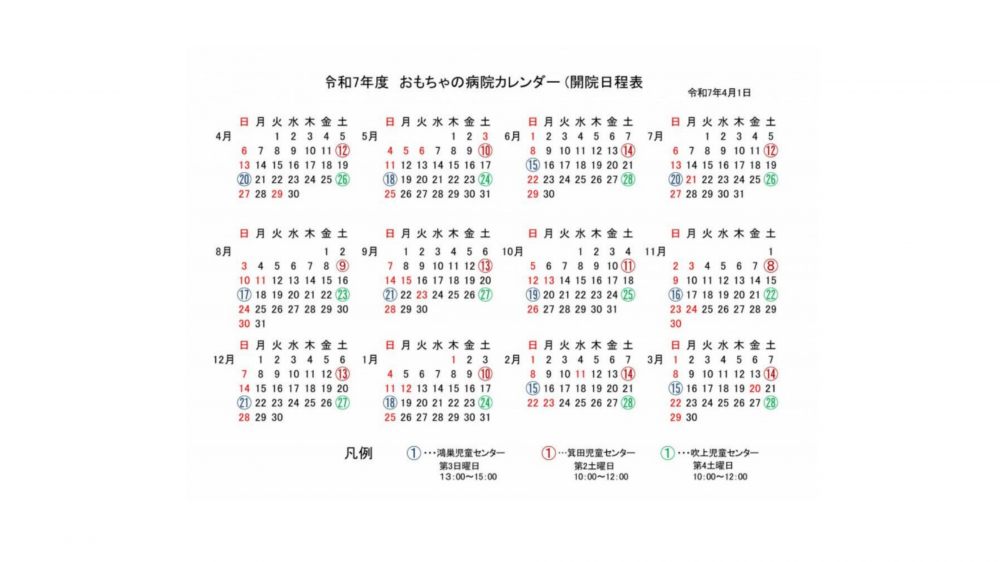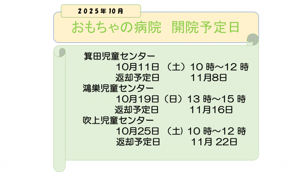 鴻巣おもちゃの病院 令和7年 10月の開院予定日 |