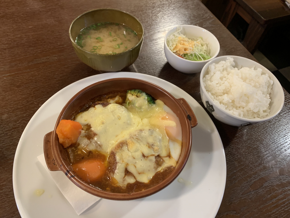 注文したのは「煮込みハンバーグ定食」肉の旨味がぎっしり詰まっており、ソースとの絡みが絶品です!