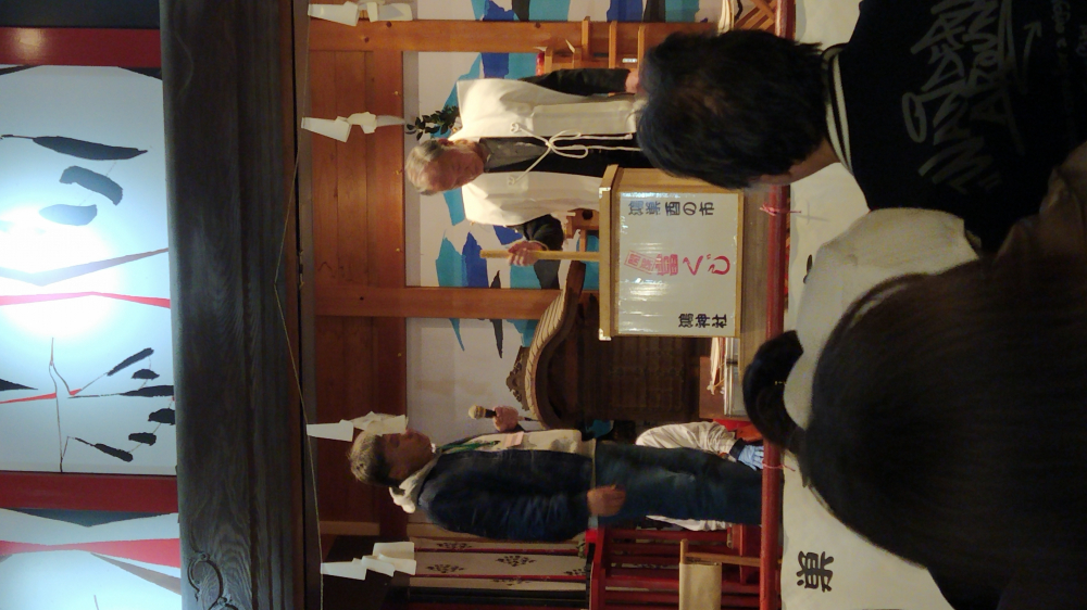 鴻巣市内の自治会長が順番に富くじを刺して抽選します。 私は五等が当たり五百円の商品券が当たりました。