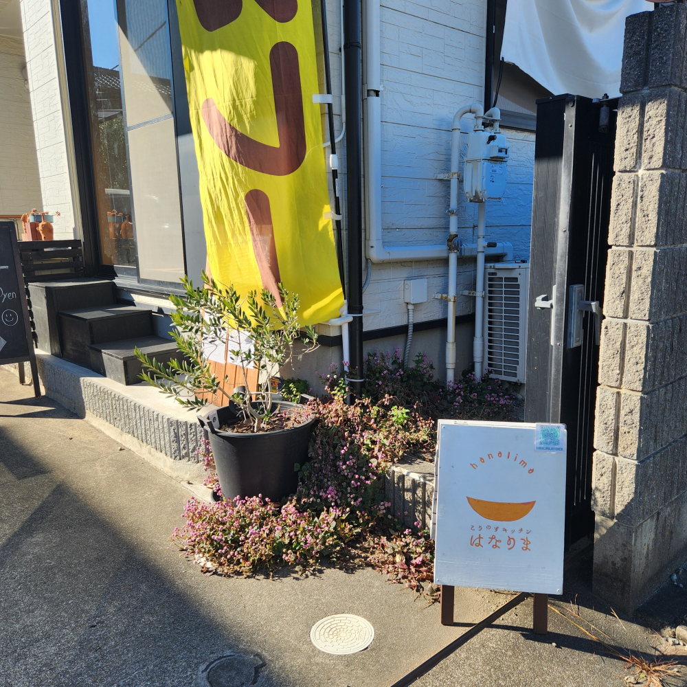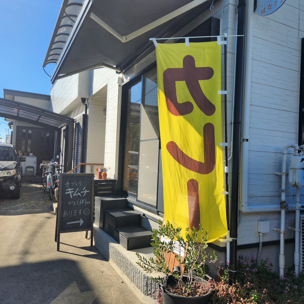 住宅街を歩いていくと、元気な「カレー」の幟と可愛らしい小さな看板が見えてきます👀