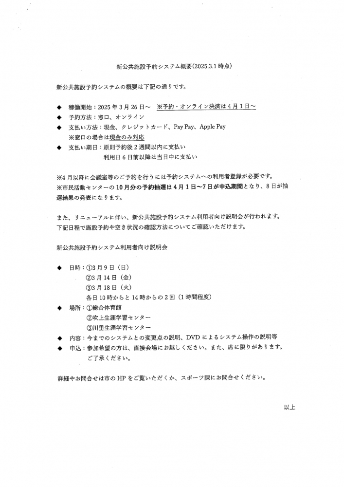 3月26日(水)から稼働の鴻巣市公共施設予約システムをご利用いただくにあたっての大切なお知らせです📣