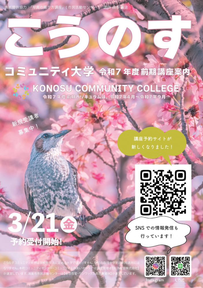4月から2025年度こうのすコミュニティ大学前期が始まります✨