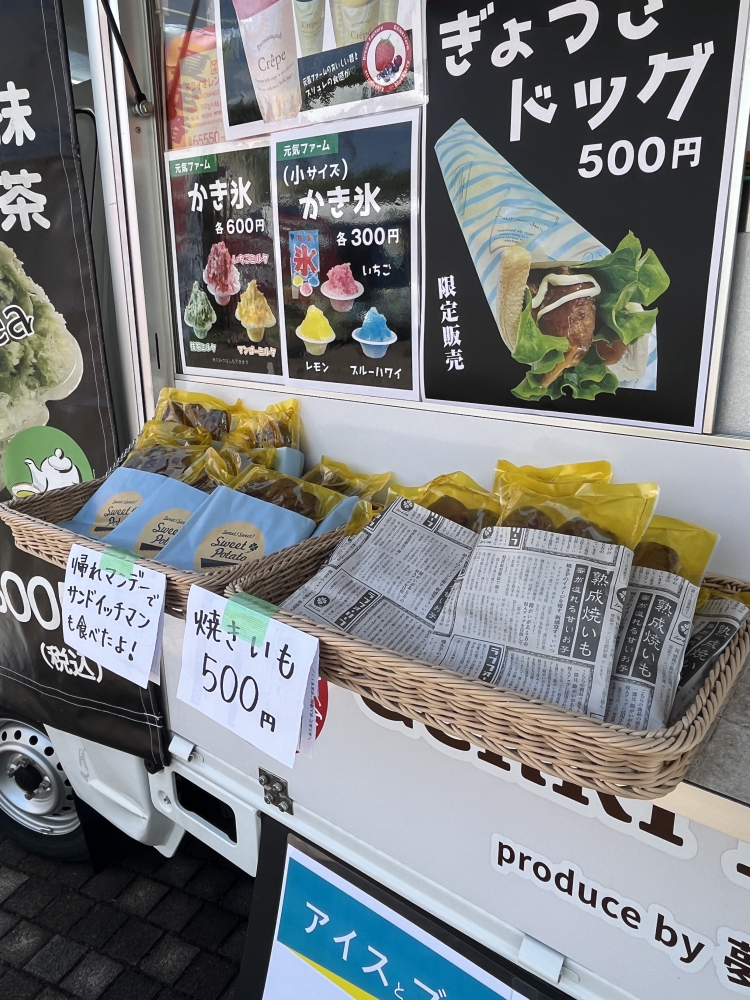 元気餃子さんのGenki kitchenでは限定販売のぎょうざドッグを始め、ブルーベリーをトッピングしたボリューミーなかき氷が販売されていて、子供たちにも大人気でした!🍧