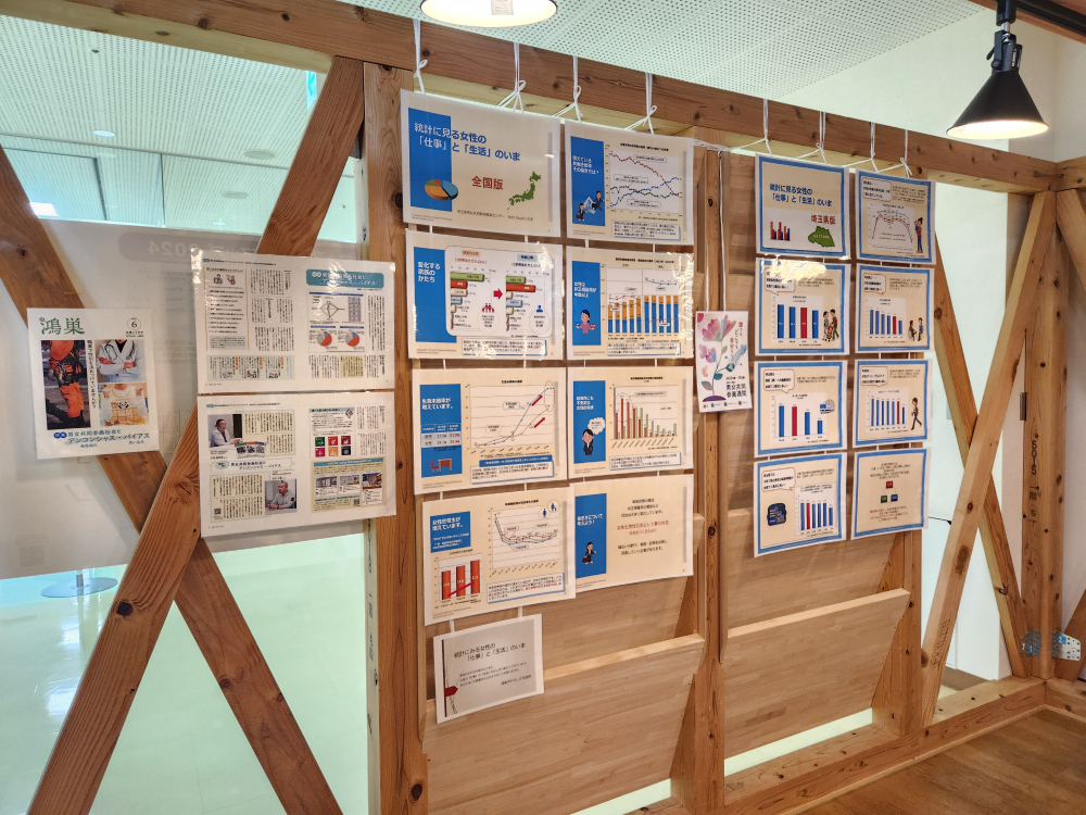 6月23日〜6月29日は男女共同参画週間です! 鴻巣市市民活動センター内にある「男女共同参画コーナー」では 6月30日まで、「統計に見る女性の「仕事」と「生活」のいま」のパネル展示を行っています📊(やさしさ支援課担当) どなたでもご覧いただけますので、ぜひご来館ください✨ ▼場所 鴻巣市市民活動センター内男女共同参画コーナー (受付の近くにある木材を基調としたスペースです🙂)