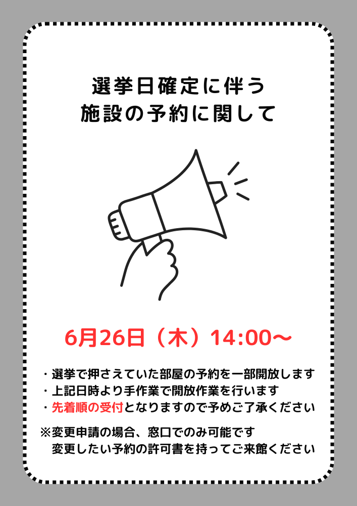 選挙日確定に伴う部屋の一部開放について(市民活動センター)