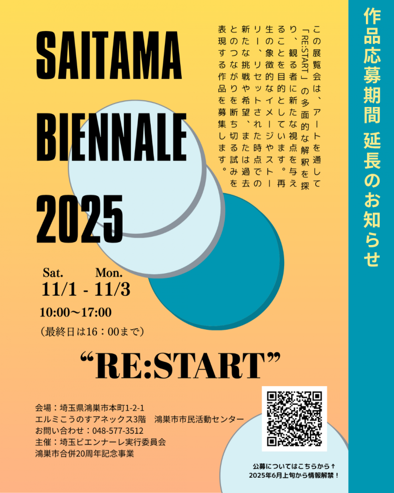 埼玉ビエンナーレ2025『RE:START』の作品の応募を受け付け中です!✨
