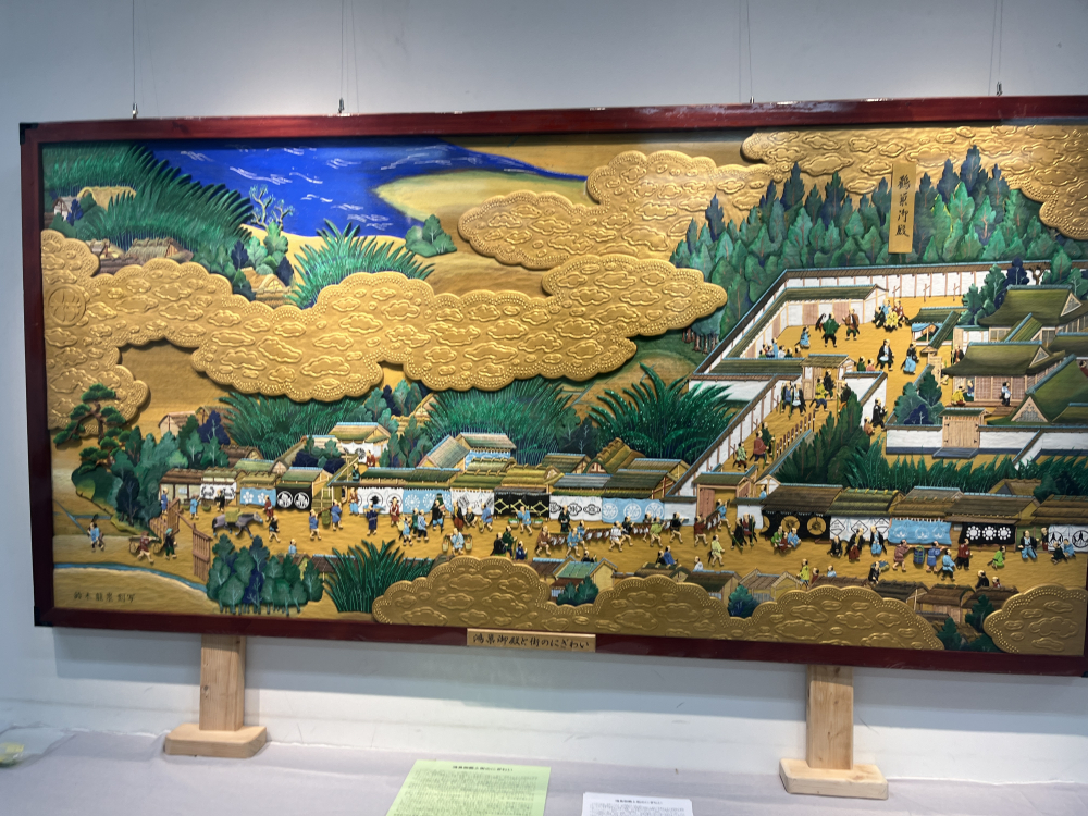 こちらは市民活動センターにも展示されている鴻巣御殿を描いたもので、絵図の模写から彫刻、彩色に至るまで約2年もの期間をかけた大作になっており、木工作品と文化財を結びつける重要な作品になっています。